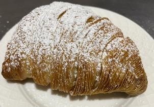 Sfogliatella: Crispy layers of pastry wrapped around ricotta and orange flavored filling. Finished with powdered sugar. $3.99