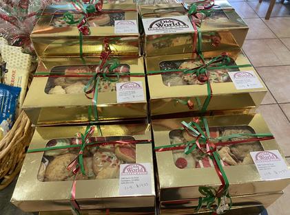 The holiday season is in full swing! Call ahead to order your cookie trays and ribbon-wrapped 1lb gold boxes. Cookies can be assorted or specified according to the individual orders.